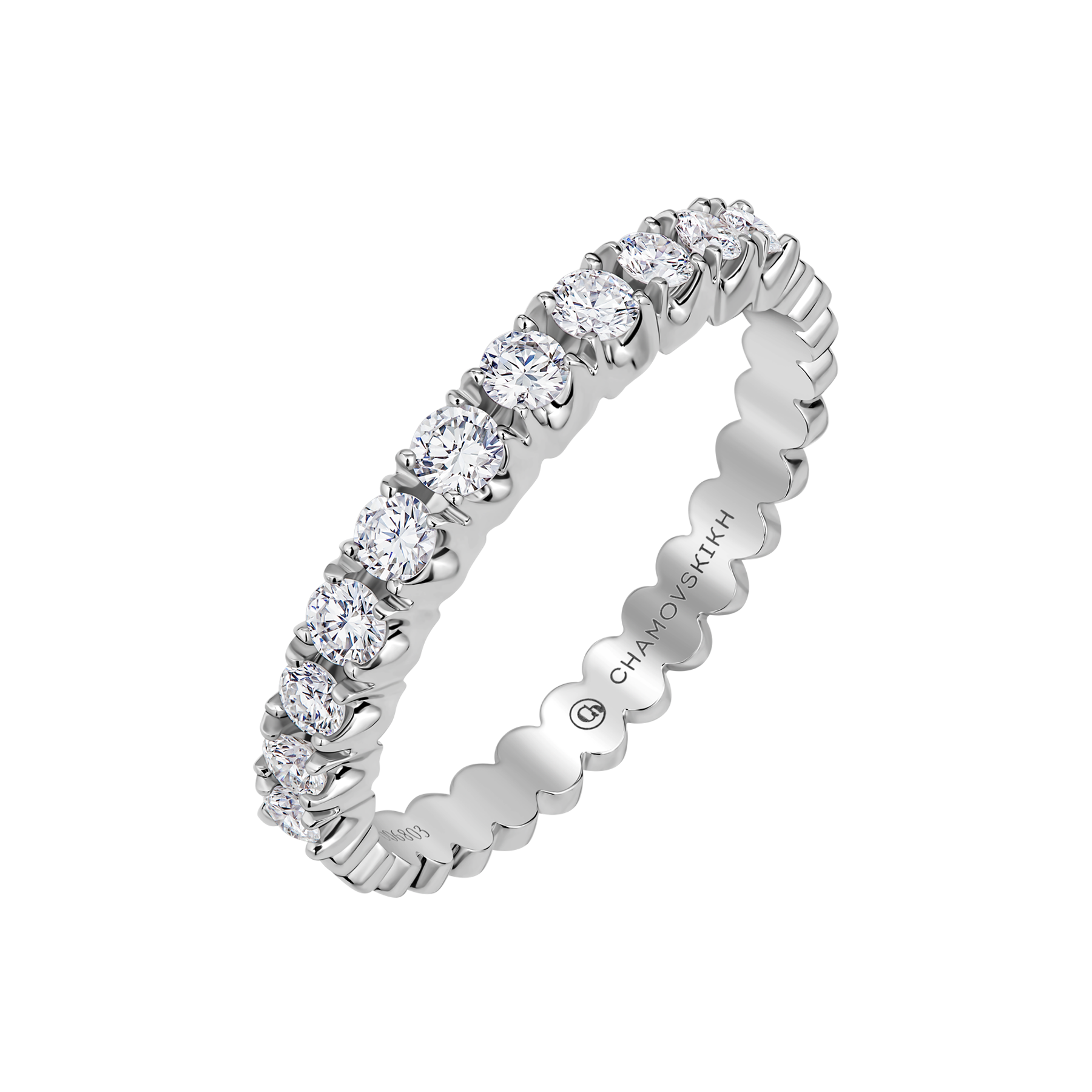 Композиция из 11 идеально подобранных друг к другу бриллиантов общим весом 0,38 ct наполнена великолепным сиянием. Огранка «круг» раскрывает красоту и демонстрирует высокие характеристики драгоценных камней. Украшение станет идеальным обручальным кольцом или стильным аксессуаром для повседневного образа.