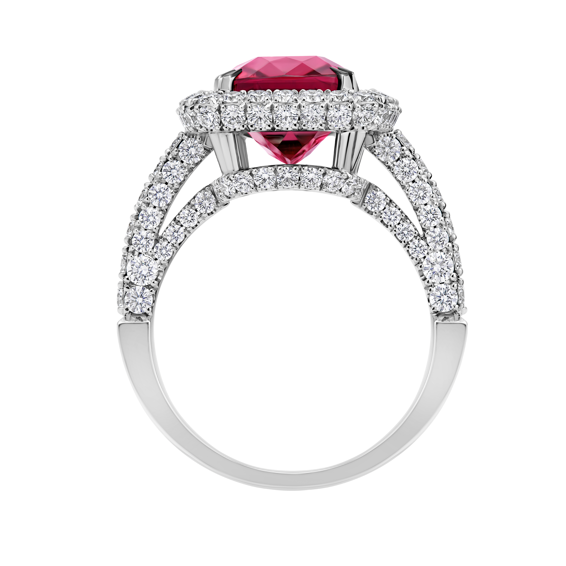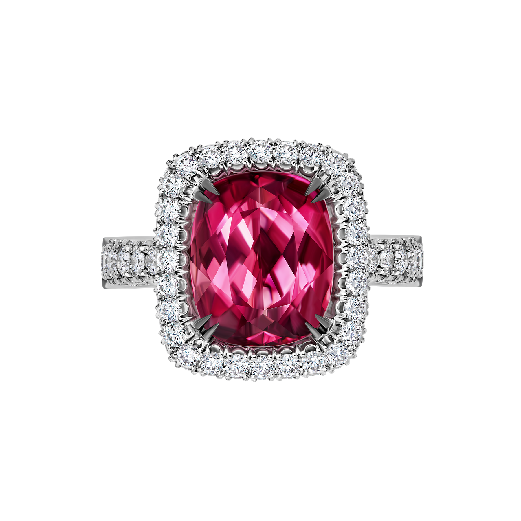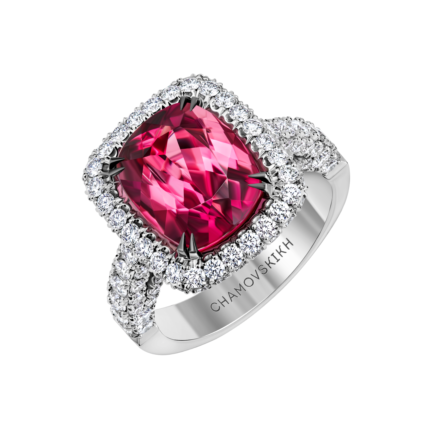 Кольцо с турмалином рубеллитом и бриллиантами, белое золото