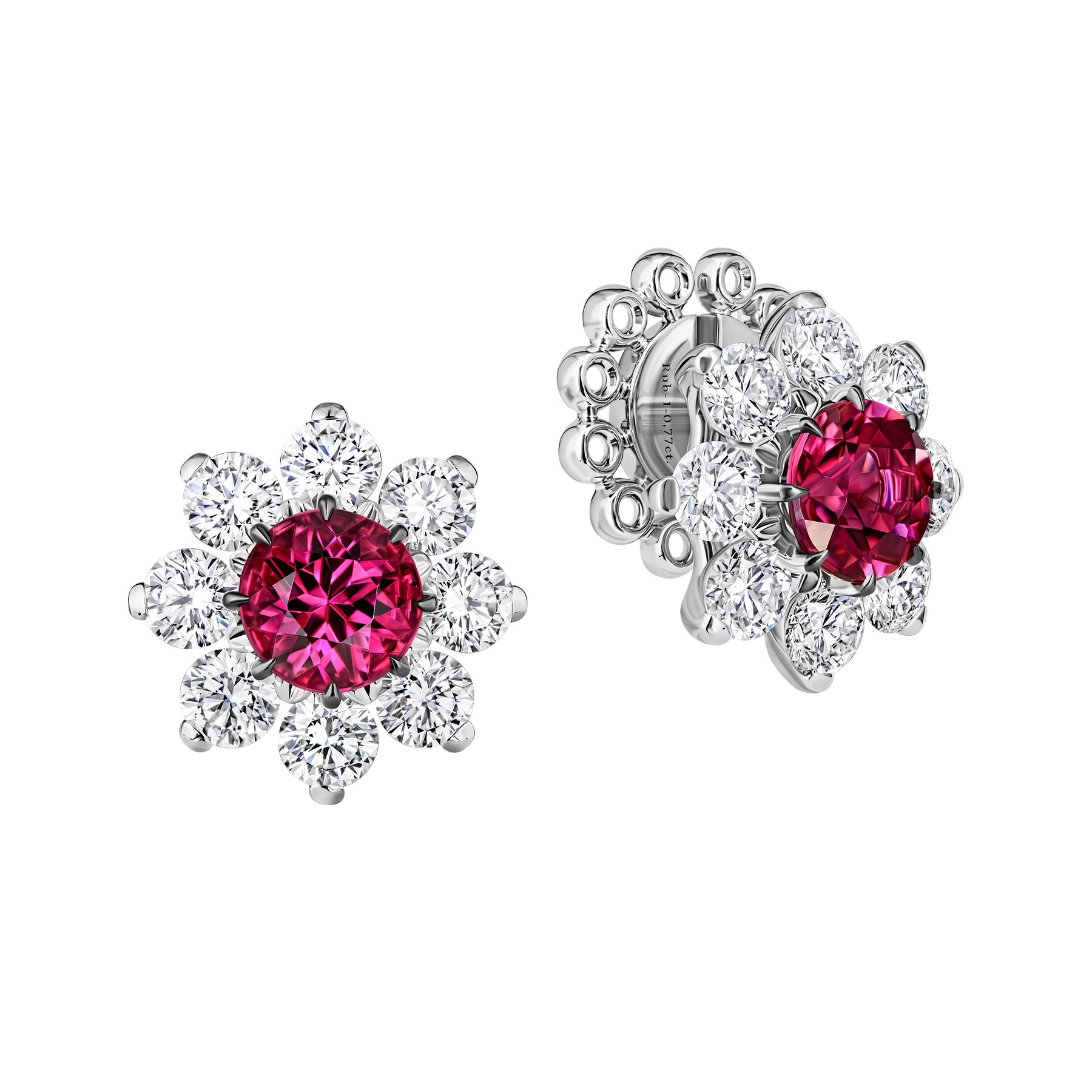 Пусеты с турмалинами рубеллитами и бриллиантами, белое золото