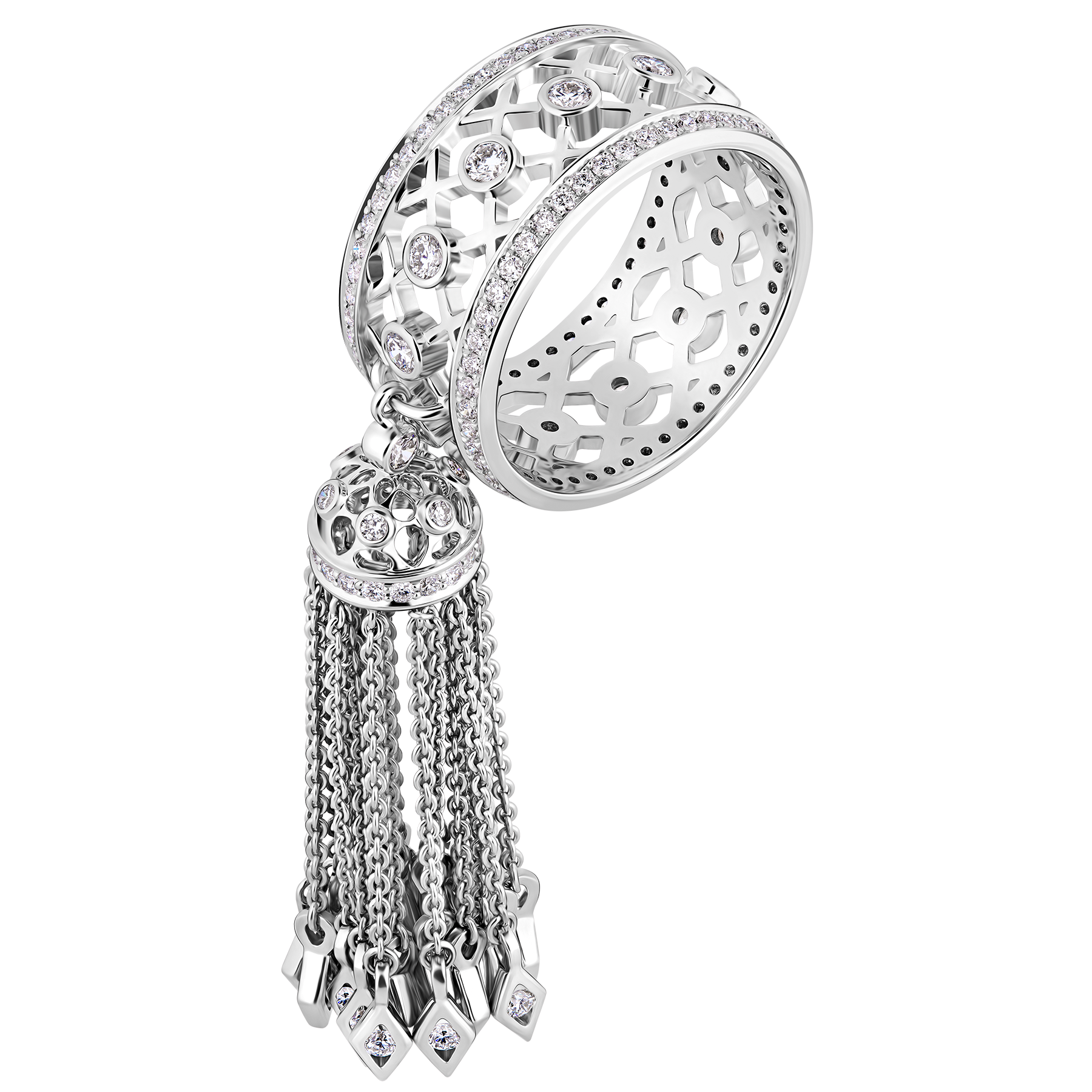 Дизайнеры Дома подчеркивают, что драгоценные кисти идеально вписываются и в повседневные образы. Пример тому — эффектное бриллиантовое кольцо из коллекции Classic и серьги-трансформеры, способные легким движением руки превращаться в базовый элемент ювелирного гардероба.