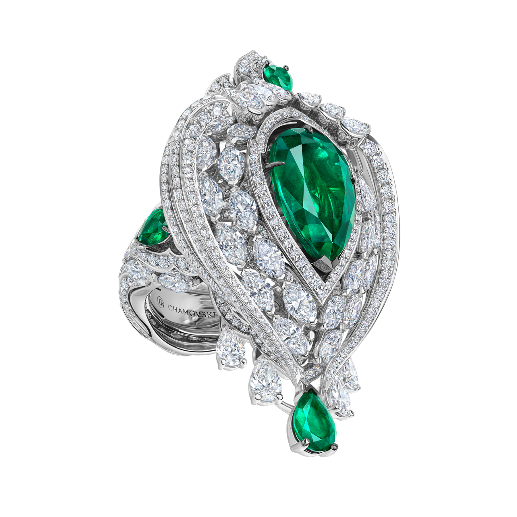 17 марта в Москве состоялась церемония награждения лауреатов международного конкурса «Русская бриллиантовая линия». Ювелирный дом CHAMOVSKIKH вновь вошел в число победителей — профессиональное жюри отметило высокой наградой флагманскую парюру бренда «Великая Держава». Серьги и кольцо с коллекционными изумрудами и бриллиантами обладают возможностью трансформации и символизируют грандиозный потенциал русского государства, славу отечественной истории и культуры.