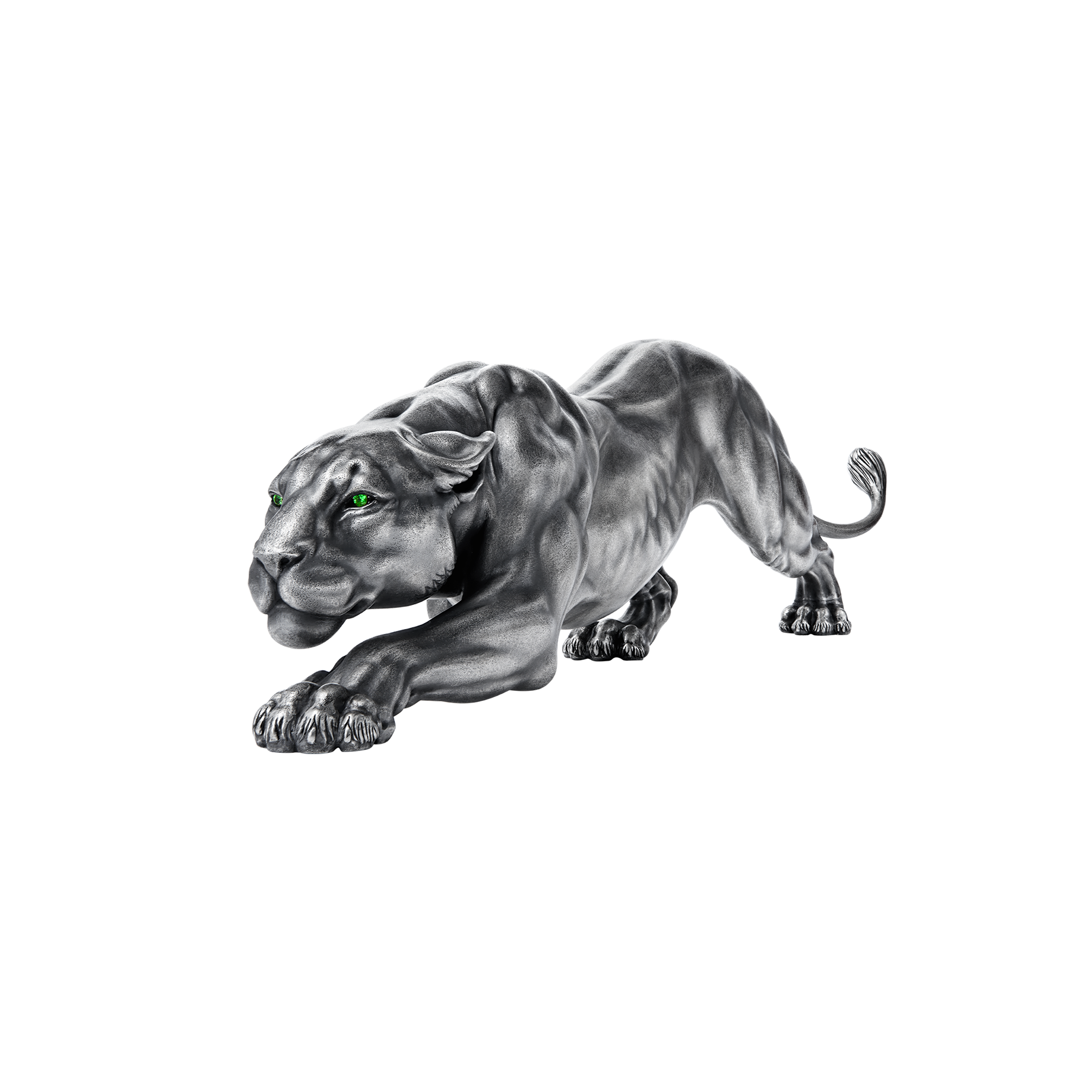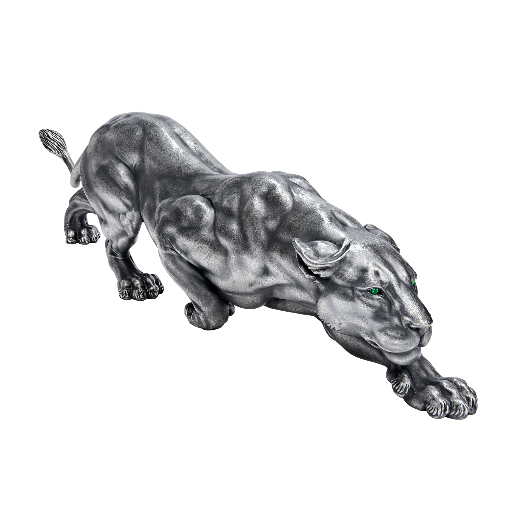 Мгновение — и драгоценная львица настигнет свою цель. Каждый мускул грациозного хищника демонстрирует силу победительницы. Фактура благородного металла и безупречная проработка каждой детали позволяют максимально точно передать пластику и изящную ловкость прирожденной охотницы.